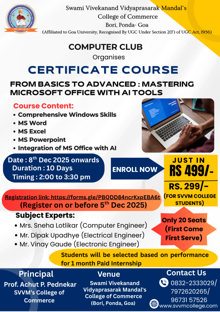 Higher Secondary School of Commerce and vocational came into existence in the year 1994. Science stream was added in the year 2011.