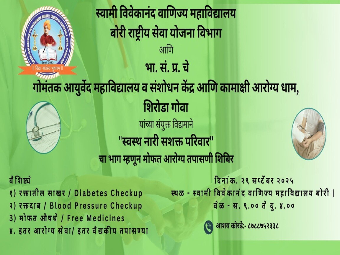 « All Events This event has passed. Free Check up Medical Camp September 299:00 am - 4:00 pm « SVVM’s Navratri 2025 Awareness Session on “Cyber Safety” » Add to calendar Google Calendar iCalendar Outlook 365 Outlook Live Details Date: September 29 Time: 9:00 am - 4:00 pm Venue SVVM’S College Of Commerce, College Campus, Bori-Goa