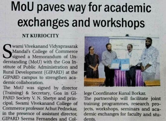 Co-curricular Activities MoU singing program to impart Vocational training to students Organised By Jan Shikshan Santhan Parvari Goa and SVVM’s College of Commerce